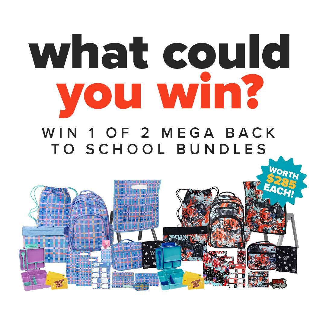 Terms & Conditions: Open to Australian residents aged 18+. To enter: Sign up for your chance to win the Mega Back to School Bundle between 12:00am AEST 11 January 2026 and 11:59pm AEST 18 January 2026. Each person may enter once. Competition period: 11 January 2026 – 18 January 2026. Prize: Two winners will each receive one Mega Back to School Bundle (contents as advertised). Prizes are not transferable, exchangeable, or redeemable for cash. Winner selection: Two winners will be chosen at random from all valid entries. Winners will be drawn on 19 January 2026 and announced on 20 January 2026 via email and social media. Winners must claim their prize within 7 days of notification; otherwise, an alternate winner may be selected. Prize fulfilment: Prizes will be delivered in January 2026. Delivery timeframes may vary.